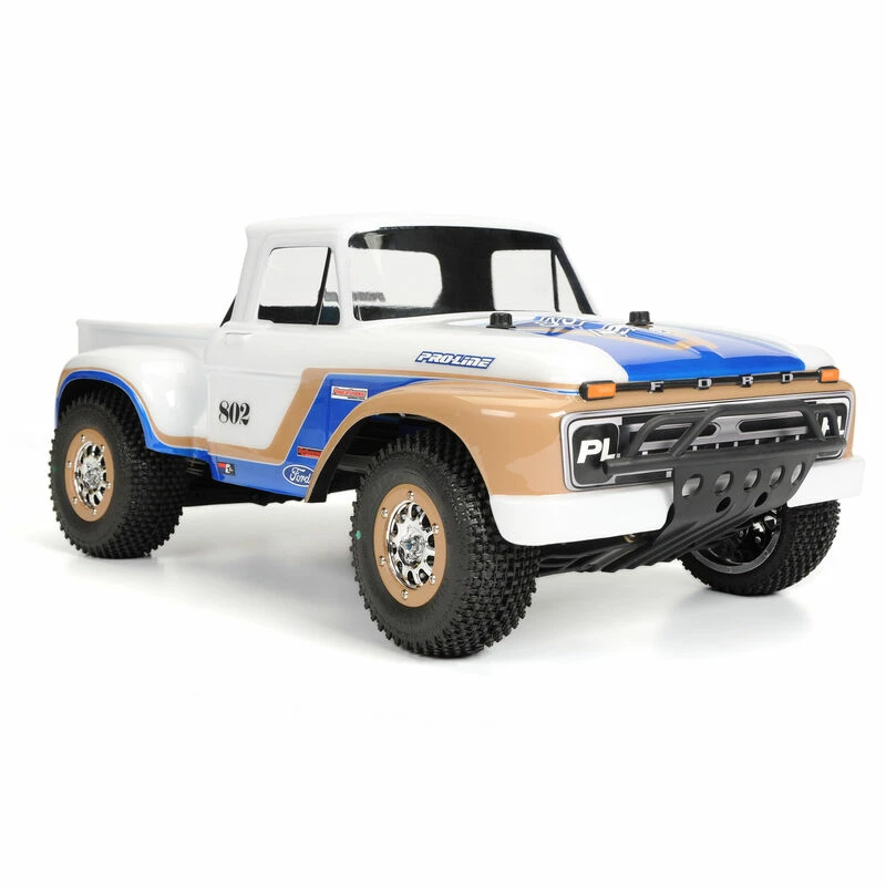 This is a 1966 Ford® F-100 Clear Body for SC trucks with extended body mounts. Now you can have your very own custom “Hay Hauler” with Pro-Line’s licensed 1966 Ford® F-100 body! The ’66 F-100 body comes with perfectly scaled details like the step-sides and huge fender flares that will bring you back to the good old days. You can even create your own version of the Class 8 Desert Truck that dominated the desert in the 1980’s! However you decide to detail your truck, the ’66 Ford body will turn heads and transform your SC into the best looking truck around. Get your very own “Hay Hauler” body now!