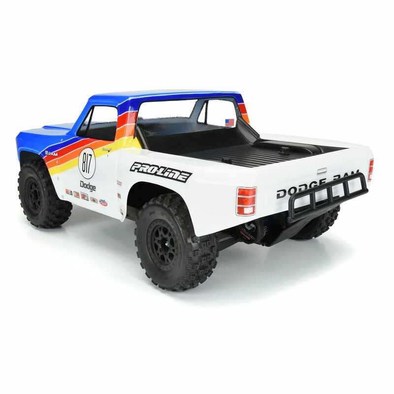 This is a 1984 Dodge Ram 1500 Clear Body for Short Course Trucks. Pro-Line now has the ultimate licensed Dodge body – the 1984 Ram 1500 Race Truck! This classic fleet side truck body features large, full race fenders and iconic styling that will separate your truck from the rest. This popular well-known truck body style dominated the desert racing scene in the mid to late 80’s and was driven by off-road legend Walker Evans making it the ultimate dream truck to many race fans. The body includes fully licensed Dodge grill, headlight and taillight decals to complete the look. Give your Short Course Truck the tough look it deserves with Pro-Line’s new 1984 Dodge Ram 1500 Race Truck body!