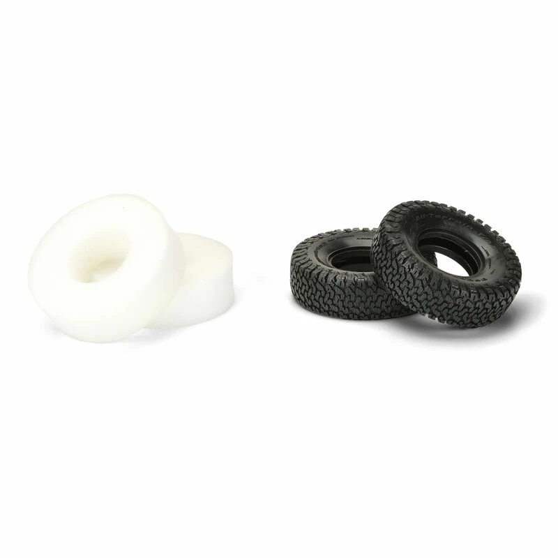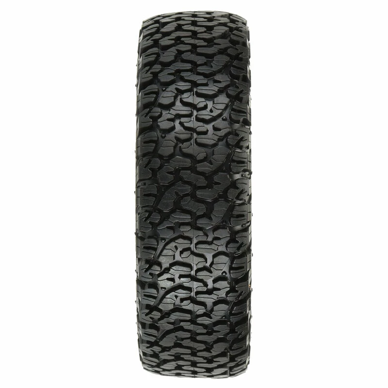 This is a pair of BFGoodrich® KO2 1.9″ tires. Pro-Line is proud to announce a partnership with the leading full-size Off-Road tire manufacturer – BFGoodrich®! This collaboration started with the introduction of the full-race BFGoodrich® Baja T/A KR2 tires and continues with the extremely popular BFGoodrich® All-Terrain KO2 tires available in Pro-Line’s legendary G8 compound! Details from the full-size race All-Terrain tire have been recreated to give your truck the ultimate in scale look and multi-surface performance. Known for extreme off-road traction and awesome street performance in the full-scale world, the BFGoodrich® All-Terrain KO2 tire features an iconic layout of densely packed tread blocks with a large number of tread sipes that will give your rig improved traction on any terrain! Pro-Line engineers decided that the KO2 tire needed to be 4.35″ tall x 1.42″ wide for the perfect balance of Scale looks and performance! The all-new BFGoodrich® All-Terrain KO2 1.9″ tires from Pro-Line are a must-have. Get yours today!