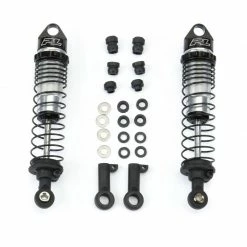 All-new dual-rate spring design for scale looks and performance. Optional softer and firmer dual-rate springs are available in the Big Bore Scaler Shock Spring Assortment (6343-02). The lower spring perch is captured, so you always know it will stay where it belongs. 90mm at full extended length, and collapse down to about 64mm (when the rubber bump stop is removed). Includes extra 5mm longer Shock Ends to increase the shock length! Mostly pre-built (just add oil).