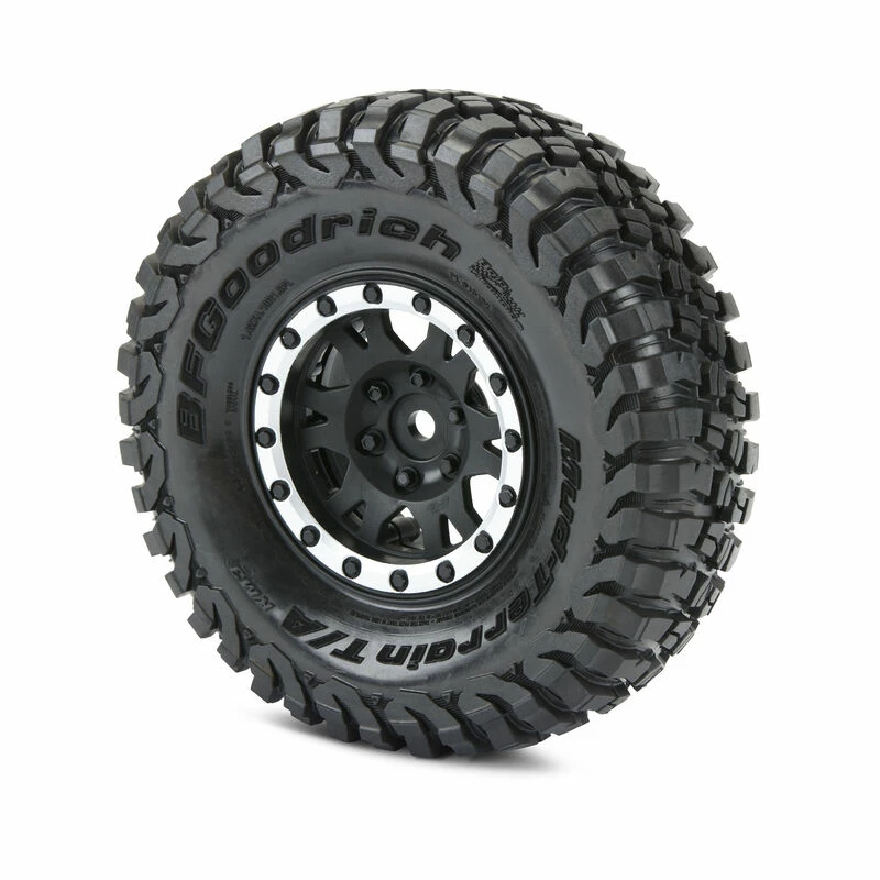 Pro-Line’s Class 1 re-creation of the Mud-Terrain KM3 comes in at 4.19″ tall x 1.42″ wide for ultra-Scale looks and performance! The all-new BFGoodrich® Mud-Terrain T/A® KM3 1.9″ tires from Pro-Line are a must have. Set your truck apart from the rest and get yours today!