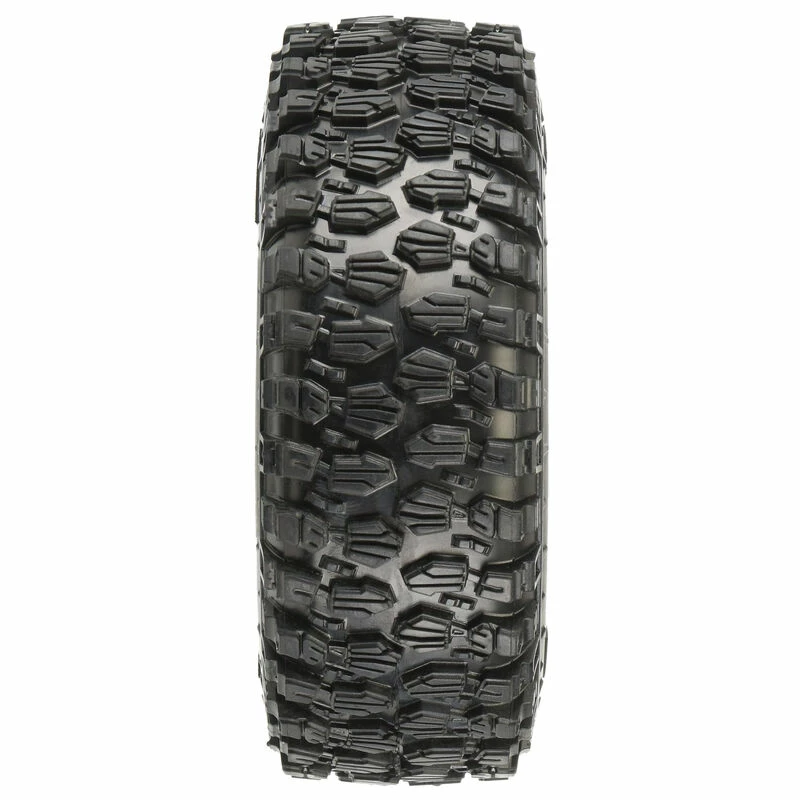 This is a pair of Class 1 Hyrax 1.9″ Rock Crawling Tires. The future of Class1 Tire Performance has arrived with Pro-Line’s 1.9″ (4.19″ OD x 1.4″ Width) Hyrax Tire! Designed from the ground up for maximum grip on the toughest terrain, the Class 1 legal Hyrax tire is ready for anything your Scale Adventure might throw at you. The Hyrax features an aggressive and open tread pattern with each tread block containing multiple Sipes for incredible tread flex while still looking great on a Scale Rig. The highly detailed connected tread on the sidewall of the Hyrax extends out for unmatched side-hilling performance and the futuristic stepped tread blocks create even more forward gripping edges that dig into slick rock like no other scale tire Pro-Line has produced to date! The Hyrax is made from Pro-Line’s Legendary G8 material, so you know it provides performance you can depend on.