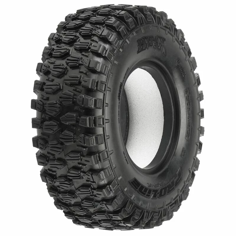 This is a pair of Class 1 Hyrax 1.9″ Rock Crawling Tires in the Super Soft Predator material. The future of Class1 Tire Performance has arrived with Pro-Line’s 1.9” (4.19″ OD x 1.4″ Width) Hyrax Tire! Designed from the ground up for maximum grip on the toughest terrain, the Class 1 legal Hyrax tire is ready for anything your Scale Adventure might throw at you. The Hyrax is now available in the softest Rock Crawling Rubber ever made: The Predator Compound! The Super Soft Predator Compound excels on wet or ultra-low traction surfaces to give you grip like you have never experienced before. The Hyrax features an aggressive and open tread pattern with each tread block containing multiple Sipes for incredible tread flex while still looking great on a Scale Rig. The highly detailed connected tread on the sidewall of the Hyrax extends out for unmatched side-hilling performance and the futuristic stepped tread blocks create even more forward gripping edges that dig into slick rock like no other scale tire Pro-Line has produced to date! The Hyrax is made from Pro-Line’s Super Soft Predator Compound, so you know it provides performance you can depend on.