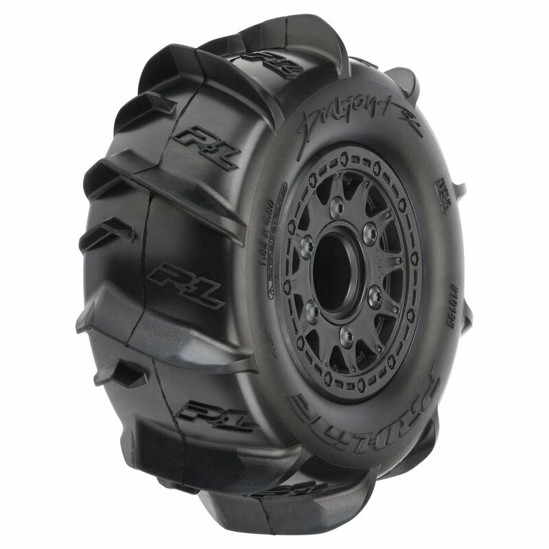 This is a pair of pre-mounted Dumont SC Tires on Raid Black 6×30 Removable Hex Wheels. Are you ready for the most extreme Short Course Paddle tires Pro-Line has ever made? Introducing the all-new Dumont SC tires that have been redesigned from the ground up to sling sand and snow further than ever before and look good doing it!