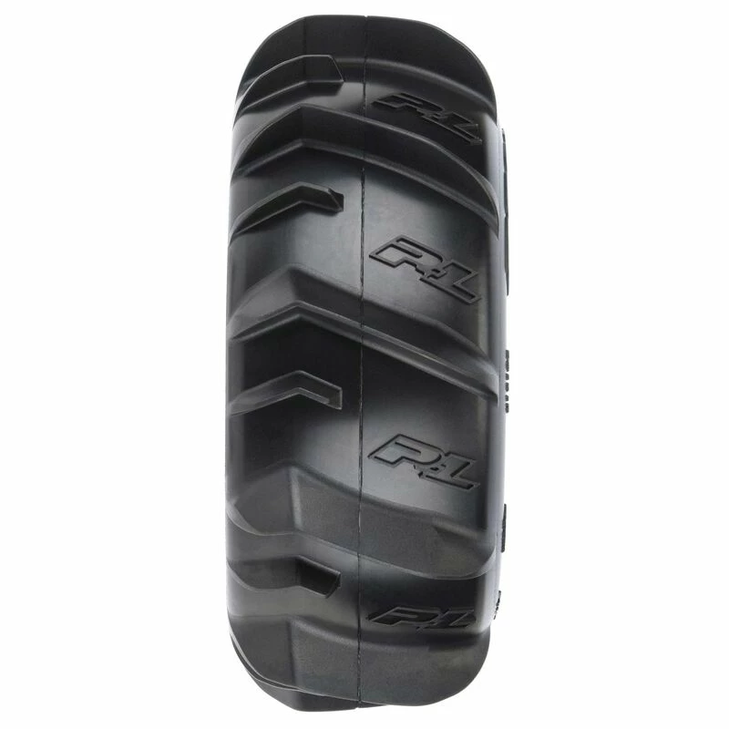 The Dumont SC tire uses the latest in paddle tread technology with large offset V-shaped paddles for maximum roosting power. Pro-Line P-L logos have been embedded into the tire carcass giving it the style that you have come to expect from Pro-Line. The Dumont SC Paddle tire gets its name from the incredible Dumont Sand Dunes in California, but these paddle tires are equally at home shredding your local snowfield in the winter. Don’t get stuck spinning your tires in the sand or snow. Get a set of pre-mounted Dumont Paddle tires for your Short Course truck today!