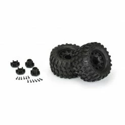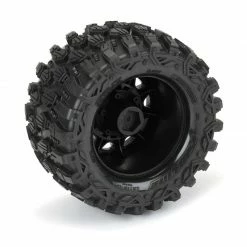 This is a pair of pre-mounted Hyrax 2.8″ Tires on Raid Removable Hex Wheels. Pro-Line is very excited to announce the Hyrax 2.8″ tire pre-mounted to the Raid Black 6×30 Removable Hex wheel! We take the guesswork out of your glue job by doing the mounting for you so you can spend more time having fun!