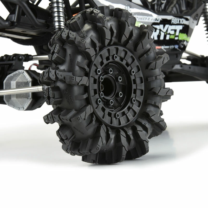 This is a pair of Interco® Black Mamba 2.6″ Mud Truck Tires. Pro-Line is proud to announce fully licensed Interco® Black Mamba 2.6″ tires specifically designed for extreme mud truck action! These massive 6″ tall x 1.86″ wide tires are perfect if you are looking to do some Mud Bogging with your rig. Transform your Black Mamba tires into an even narrower and more extreme mud tire when you combine them with Pro-Line’s Vice CrushLock 2.6″ Bead-Loc wheels (PRO278903).