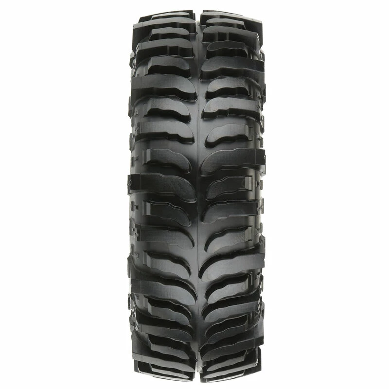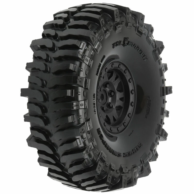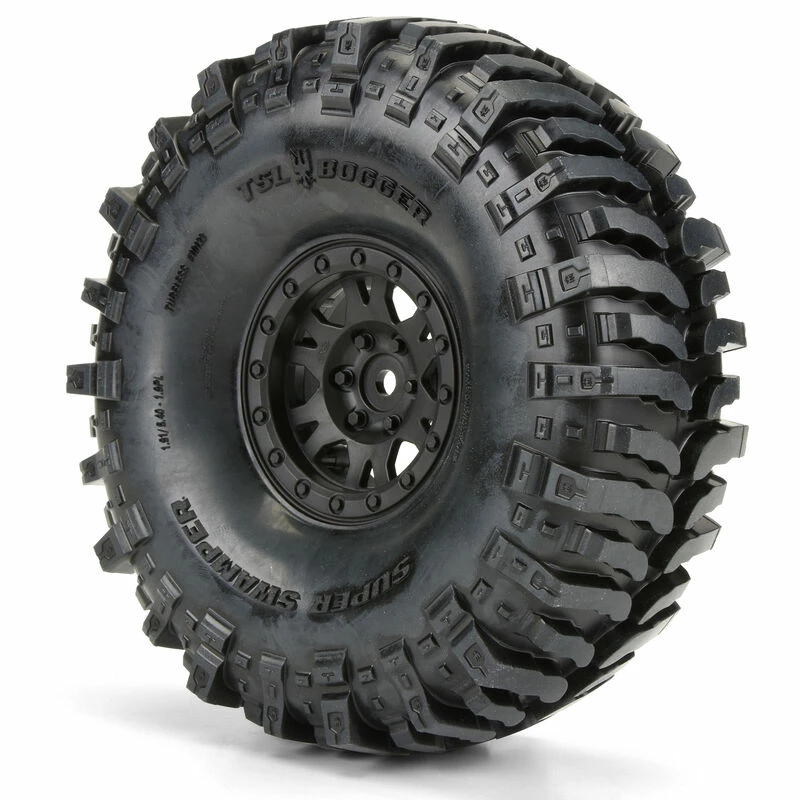 This is a pair of pre-mounted Interco® Bogger® 1.9″ Tires. These massive 5.4″ tall x 1.91″ wide tires are perfect for guys looking to do some Mud Bogging with their rigs or for recreating a beloved full size truck in perfect scale detail. Pro-Line’s officially licensed Interco® Bogger® tires feature a directional tread pattern with the patented Interco TSL (three stage lug) design just like the full-size tires. The Bogger® tires are aggressive in stock form and are also extremely versatile and easily modified for even more mud flinging performance. They come in Pro-Line’s legendary G8 compound, so you know they will perform beyond expectations right out of the package.
