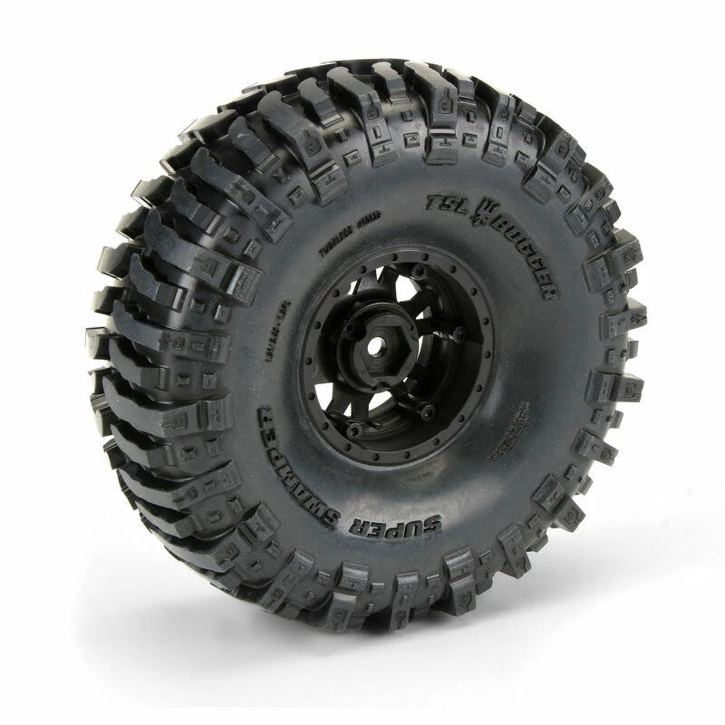 The Interco® Bogger® 1.9″ tire comes conveniently pre-mounted to Impulse Black Plastic 1.9″ wheels that are Proudly Made in the USA! These Impulse wheels are designed to not only look scale but to be super easy to use by only requiring 6 screws per wheel for mounting tires. The unique 3-piece plastic wheel design bolts together in the back and locks on to Pro-Line’s incredible list of 1.9″ Crawling Tires.
