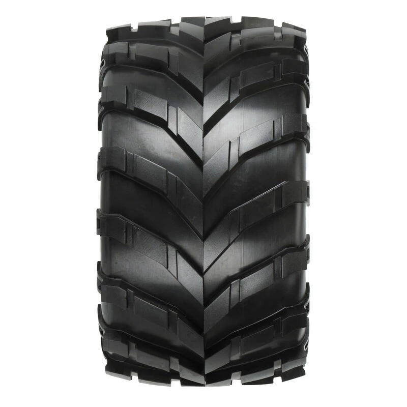 This is a pair of pre-mounted Masher 2.8″ Tires. Pro-Line is very excited to announce the availability of the Masher 2.8″ pre-mounted to the wheel that you need. We take the guesswork out of your glue job by doing the mounting for you so you can spend your time having fun! The ultra-modern Chevron Style tread digs deep into the roughest and toughest terrain and looks mean doing it. The side tread of this behemoth tire features a hook shape that craters the dirt and achieves unparalleled side traction. After fitting your truck with this massive Masher tread, you’ll be ready for back yard thrashing and mashing on any neighborhood terrain.