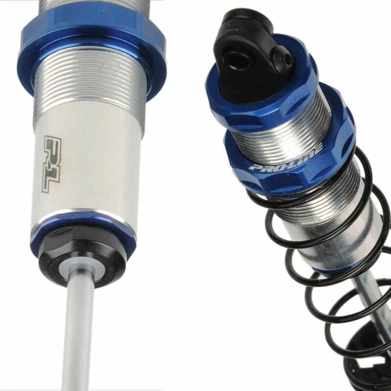 The next generation of Pro-Line Shock Technology has arrived: Pro-Line Pro-Spec Shocks! Now available Pre-Assembled, just fill with your choice of shock oil (not included). Every last detail has been refined to give you the best performing and best looking Shocks ever made. The Pro-Spec Shocks are a 12mm Big Bore design with a Single Low Friction X-Ring Seal. The Pistons and Shaft Guides are made from Silky Smooth White Delrin for Low Stiction and the 3.5mm thick Shock Shaft is Hard Chrome Coated, just like full-scale racing shocks.