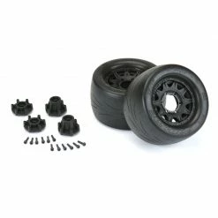 This is a pair of pre-mounted Pro-Line Prime 2.8″ Tires. Pro-Line has a Street Tire for 2.8″ Monster Truck fans specifically designed for High-Speed fun! We take the guesswork out of your glue job by doing the mounting for you so you can spend your time having fun! The Prime 2.8″ is almost a complete slick tire that will put the maximum amount of rubber down on asphalt and concrete for incredible traction. The smooth sidewall of the Prime 2.8″ allows for controllable slides and burnouts on the street where normal treaded tires would cause the dreaded catch and flip. Bring a whole level of street fun to your 2.8″ Monster Truck with Pro-Line’s Prime!!