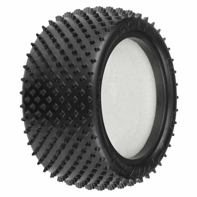 This is a pair of Pyramid Buggy Rear Tires. Astro turf racing has been steadily growing in the U.S. and around the World and Pro-Line has you covered with the Pyramid buggy rear tire! The Pyramid features hundreds of large pyramid shaped pins with the knife edge pointed front to back and side to side for maximum grip that stay sharp even as they wear down. The carcass shape has been optimized for the demands of Astro racing, which is slightly smaller and narrow than standard dirt tires for improved agility. The Pyramid comes in Medium (CR3) compounds for hot weather conditions. If you are going Astro turf racing, you need some Pyramids! Get yours today!