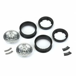 This is a pair of Rock Shooter 1.9″ Aluminum Composite Internal Bead-Loc Wheels. Pro-Line is proud to introduce our Rock Shooter 1.9″ Aluminum Internal Bead-Loc Wheels that are Proudly Made in the USA! These Rock Shooter wheels are designed to not only look scale with the 12 hole design but to be super easy to use by only requiring 6 screws per wheel for mounting tires. The face of the Rock Shooter has been CNC machined in the USA to exacting tolerances and precision finishes that are second to none! These look just like real wheels! The unique 3-piece wheel design bolts together in the back and locks on to Pro-Line’s incredible list of 1.9″ Crawling Tires the same way as Pro-Line’s Impulse 1.9″ plastic wheel. The overall wheel width and wheel offset are the same as Pro-Line’s Impulse 1.9″ plastic Wheels, so you know they will fit your truck and look good doing it. Get your very own set of Pro-Line Rock Shooter 1.9″ Aluminum Composite Wheels today!