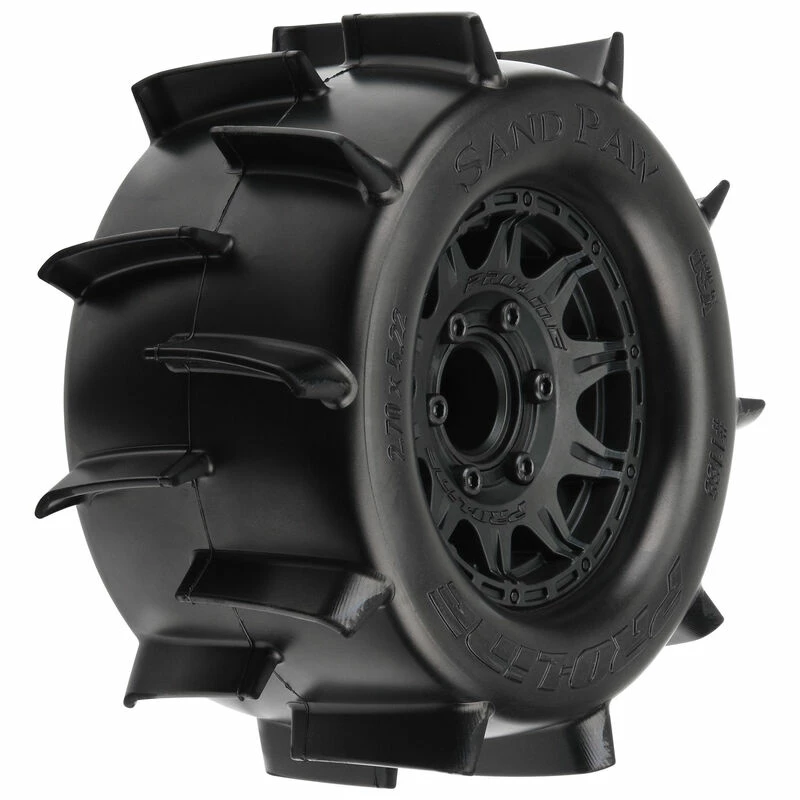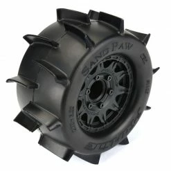 This is a pair of pre-mounted Sand Paw 2.8″ Paddle tires. Get ready to have some serious fun playing in the Sand and Snow because Pro-Line now has pre-mounted Sand Paw 2.8″ tires! There is nothing like the rush of ripping through the sand dunes or shredding the fresh powdery snow with your truck. Other tires will just slip around in the sand and snow, but the Sand Paw tires will grip, rip and roost!
