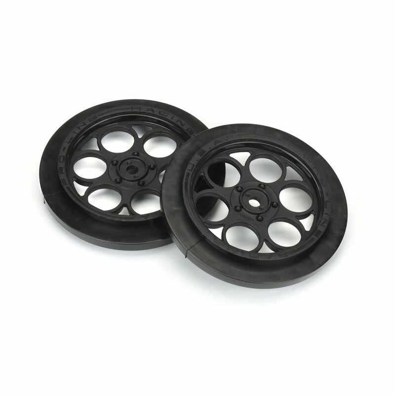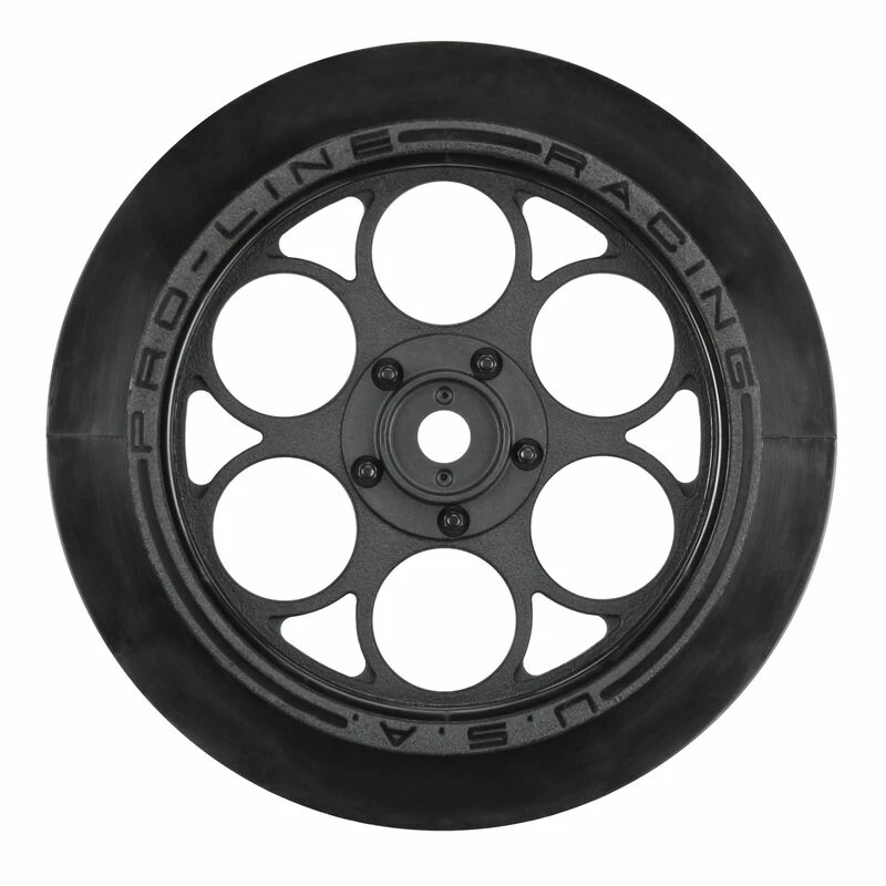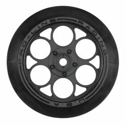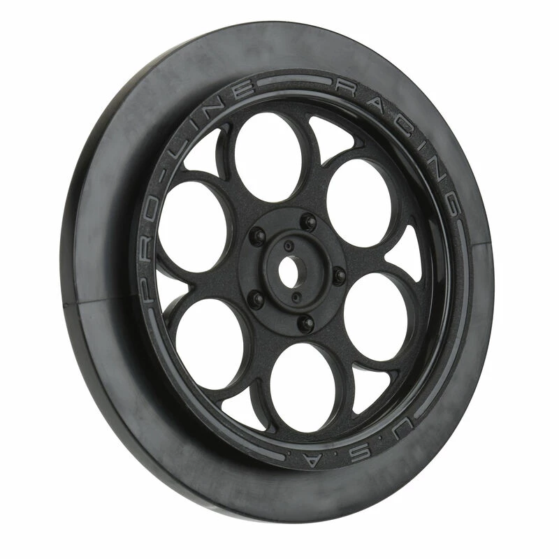 This is a pair of Showtime Front Runner 2.2″/2.7″ Black Drag Racing Front Wheels. It’s Showtime! Pro-Line has an all-new 2.2″/2.7″ Black Drag Front Wheel featuring a scale spoke pattern that mimics full-size drag wheels. The Showtime Front Runner 2.2″/2.7″ wheel is a perfect fit for Pro-Line’s new Front Runner 2.2″/2.7″ Tires (PRO10197203) and is designed to be super lightweight and narrow for maximum performance. The Showtime Front Runner Wheels are a strong and lightweight 12mm hex wheel making them the ideal choice for performance drag racing. The wheel offset is ideal for Losi® 22S™ No Prep Drag Car, 2wd Slash® trucks converted to no-prep Drag Racing cars, and AE DR10. This wheel is designed to eliminate the need for foam insert completely for the ultimate in lightweight performance. The Showtime Front Runner Wheel is proudly made by Pro-Line and Made in the USA. Launch your no-prep Dragster to the next level with the Pro-Line Showtime Front Runner Drag Wheels today!