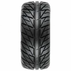 This is a pair of pre-mounted Pro-Line Street Fighter SC Tires. Looking for the ultimate long-wear street tire? Then check out Pro-Line’s Street Fighter SC. Based on the latest in high-performance on-road tire technology, the Street Fighter SC has the perfect balance of G force enhancement and style that will keep your truck turning heads.