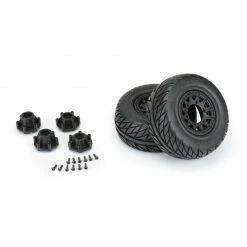 The Street Fighter SC tires are mounted to a pair of Raid SC Removable Hex Wheels. We take the guesswork out of your glue job by doing the mounting for you so you can spend your time having fun! Pro-Line is proud to introduce a true next-generation Short Course wheel design – the Raid 2.2″/3.0″ Removable Hex Wheel for all Short Course Tires! Imagine being able to easily change the offset of your wheel to fit different applications by simply changing out the hex! Now you can with the new 6×30 Removable Hex system from Pro-Line. The wheels include a pair of 12mm Slash® 4×4 Front/Rear (Slash® 2wd Rear) hexes and a pair of 12mm Slash® 2wd Front hexes that fit the most popular trucks. Optional 14mm, 17mm and ProTrac™ offset 12mm hexes (PRO6355-00) are available separately to fit your exact application. If your wheel hex ever gets damaged, it can easily be replaced without needing to replace your glued tires (PRO6354-00 Replacement Slash® Hexes)! These new Raid SC wheels accomplish all of this and more by using Pro-Line’s unique 6×30 interlocking hex design that is secured to the wheel by 6 M3 screws that are spaced 30mm across. The built-in adjustability and ease of use make this a new must-have wheel for Short Course Trucks everywhere! Get your new Raid SC pre-mounted tires today!
