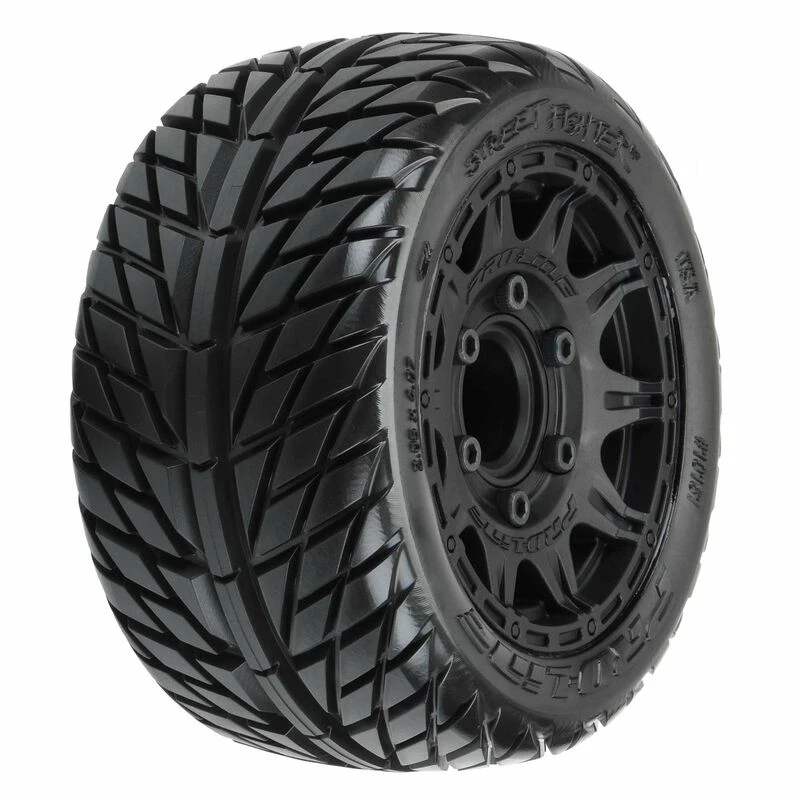 PRO1016110 | Street Fighter LP 2.8″ Street Tires Mounted on Raid Black 6×30 Removable Hex Wheels (2) for Rustler® 2wd & 4wd Front and Rear