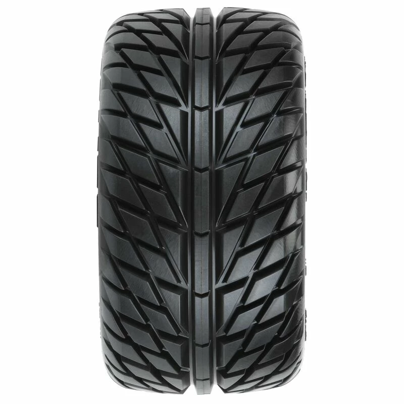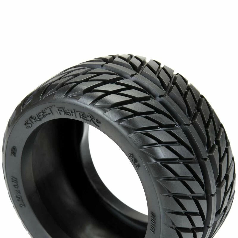This is a pair of pre-mounted Pro-Line Street Fighter LP 2.8″ Tires. Looking for the ultimate street tire? Then check out Pro-Line’s Street Fighter LP (Low Profile) 2.8″ Tire perfect for your Rustler® 2wd or Rustler® 4×4! Based on the latest in high performance on-road tire technology, the Street Fighter LP 2.8″ tire has the perfect balance of G force enhancement and style that will keep your truck turning heads!