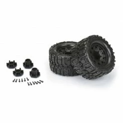 This is a pair of pre-mounted Trencher HP 2.8″ Belted All Terrain Tires. Pro-Line is proud to introduce the History-making Trencher HP 2.8″ BELTED All Terrain Truck Tires! Pro-Line has developed the technology to mold a High-Performance herringbone weave pattern Belt inside of the relentless, tall and grippy tread of the Trencher HP. These are not your average belted tires! Made for All Terrain bashing, the Trencher HP 2.8″ tires will not balloon or expand during use and will still provide the incredible grip that you expect from Pro-Line tires due to the soft M2 compound. Just like all Pro-Line’s tires, they are proudly Made in the USA! Just like the original Trencher 2.8″ tire, the next generation Trencher HP 2.8″ is destined to become the ultimate, go-to Bash tire for your truck!