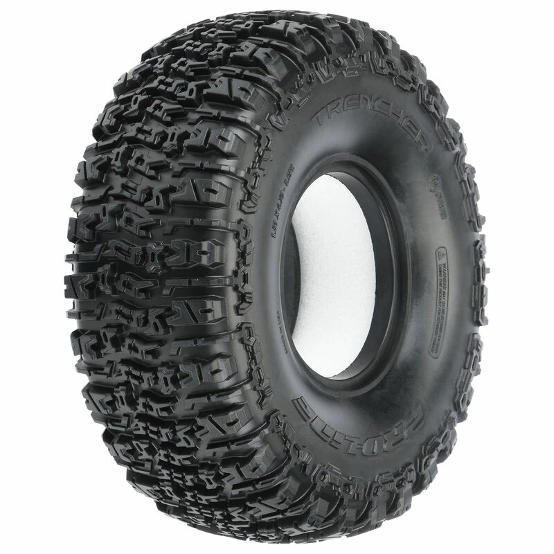This is a pair of Trencher 1.9″ Rock Crawling Tires. The almighty Hyrax finally has some real competition with Pro-Line’s 1.9″ (4.75″ Tall x 1.81″ Wide) Trencher Tire! Inspired by Pro-Line’s insanely popular all-terrain Trencher tread, this Class 2 legal crawler tire is ready for anything your Scale Adventure might throw at you. The Trencher 1.9″ features an extremely aggressive tread pattern with each tread block containing multiple sipes and multiple levels for incredible tread flex while still looking great on a Scale Rig. The highly detailed connected tread on the sidewall of the Trencher extends out for great side-hilling performance that only slides out when you want it to! The Trencher 1.9″ tire is made from Pro-Line’s Legendary G8 material and Super Soft Predator Compound, so you know it provides the performance you can depend on. The future of 1.9″ tire performance is here with Pro-Line’s new Class 2 Trencher tires! Get your own set of Trenchers today!