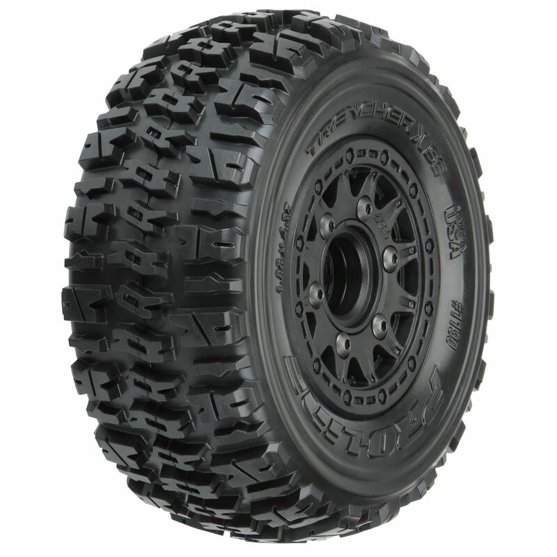 PRO119010 | Trencher X SC 2.2″/3.0″ All Terrain Tires Mounted on Raid Black 6×30 Removable Hex Wheels (2) for Slash® 2wd & Slash® 4×4 Front or Rear