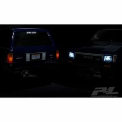 This is a Universal LED Headlight & Tail Light Kit for Crawlers. Pro-Line is proud to introduce the new Universal Headlight and Tail Light Kit with real, working LED Lights perfect for your Crawler! If you are like us, you want to use your RC car at any time of the day or night and this Light Kit allows you to do that while adding even more Scale Realism. This light kit includes 4 LED Light bulbs – 2 White lights for the head lights and 2 Red lights for your tail lights – and the lights are pre-wired to plug directly into your receiver (5V-6V) for power. The LED Lights can be housed in 5 different sets of optional front or rear Black Nylon light buckets that have been designed to fit most Rock Crawling Bodies. The LED’s are secured into the Light Buckets with the included screws and the Light Buckets can be installed inside the body with flexible adhesive or double-sided tape. Night crawling is all the rage, so you don’t want to get left in the Dark! Get Pro-Line’s new Universal LED Headlight and Tail Light Kit for your truck today!