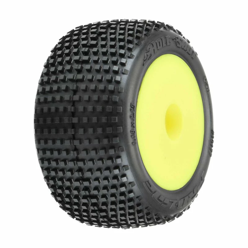 The Mini-T™ is back, and Pro-Line now has the perfect upgrade tire for your new mini-truck: The pre-mounted Hole Shot tire! The Hole Shot is the tire that everyone turns to when looking for an edge over the competition because it just works, everywhere. Period. The Hole Shot is renowned across the world as one of the most used race tires of all time. From World Championships to National Championships, Regional race events to club race events, the Hole Shot design has won just about every title imaginable. Pro-Line’s innovation team is proud to bring you the Hole Shot tire mounted on Yellow Wheels designed specifically for the new Mini-T™ 2.0 for maximum performance on a variety of surfaces. The unique mini-pin Hole Shot tire is made from our soft M3 compound and is made to fit directly onto the stock Mini-T™. Soft open cell foam is included for maximum grip. The Hole Shot is the new must-have tire for the Mini-T™ 2.0, so get them today!