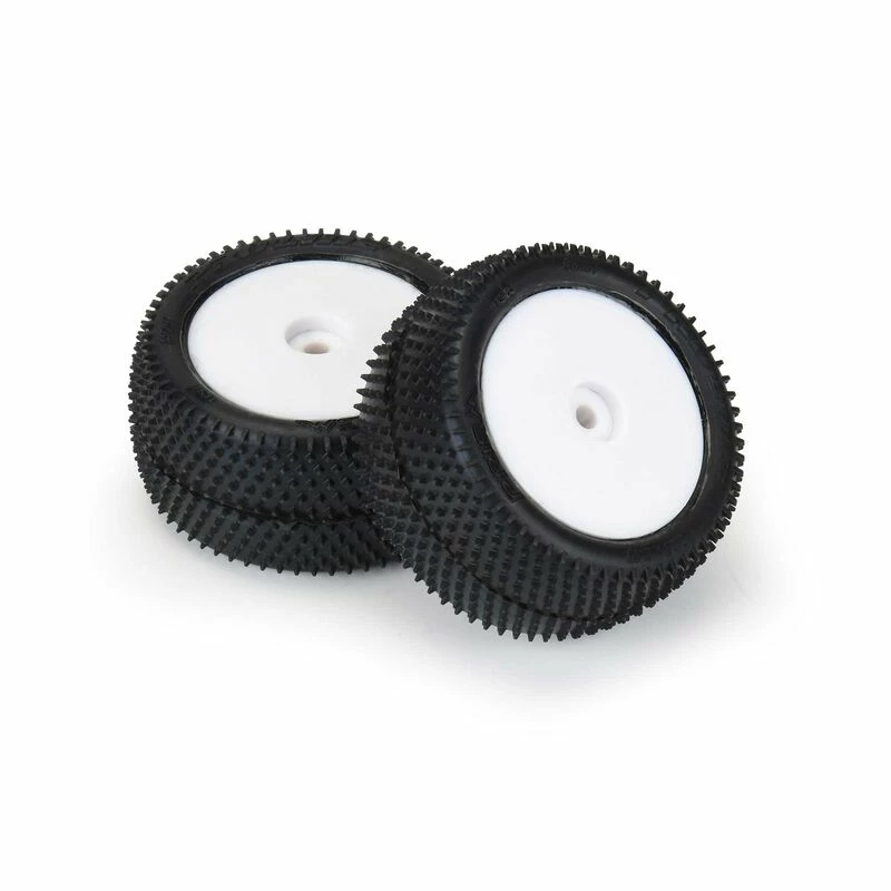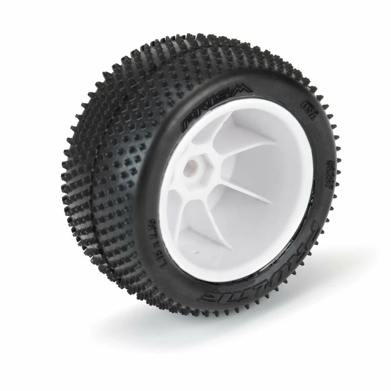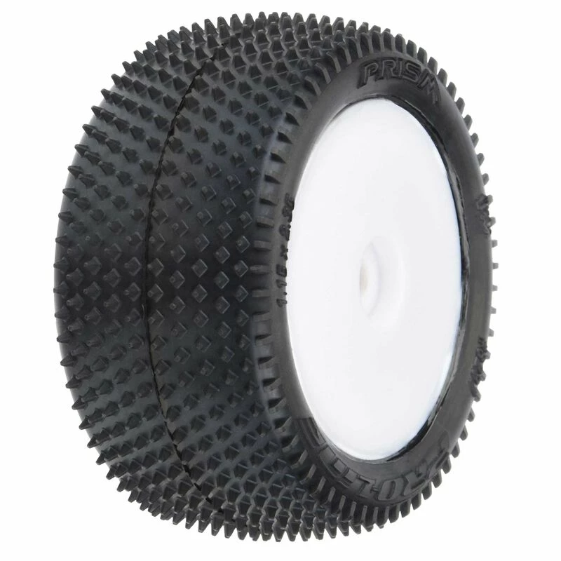 The Mini-B™ is one of the most exciting new mini vehicles released and Pro-Line is ready to take it to the next level with mini carpet tires. Introducing Mini-B™ Prism rear tires perfect for racing your friends at the local carpet track! You can even set up a track in your living room! The Prism features Ultra-Sharp Prism-shaped Pins for long-lasting carpet racing tread and very consistent performance. The Prism pins are positioned with the knife edge pointed front to back and side to side for maximum grip and stay sharp even as they wear down. The Prism rear tires are conveniently pre-mounted to White Mini-B™ rear wheels and are made from a special carpet racing compound. Pair the Prism rear tires with the Wedge front tires (PRO829813) for maximum carpet performance. Don’t get left out of the Mini-B™ carpet fun. Get your own set of Pro-Line Mini-B™ carpet tires today!