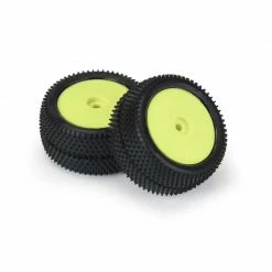 The Mini-B™ is one of the most exciting new mini vehicles released and Pro-Line is ready to take it to the next level with mini carpet tires. Introducing Mini-B™ Prism rear tires perfect for racing your friends at the local carpet track! You can even set up a track in your living room! The Prism features Ultra-Sharp Prism-shaped Pins for long-lasting carpet racing tread and very consistent performance. The Prism pins are positioned with the knife edge pointed front to back and side to side for maximum grip and stay sharp even as they wear down. The Prism rear tires are conveniently pre-mounted to Yellow Mini-B™ rear wheels and are made from a special carpet racing compound. Pair the Prism rear tires with the Wedge front tires (PRO829812) for maximum carpet performance. Don’t get left out of the Mini-B™ carpet fun. Get your own set of Pro-Line Mini-B™ carpet tires today!
