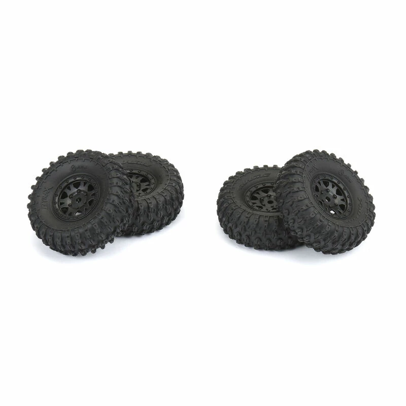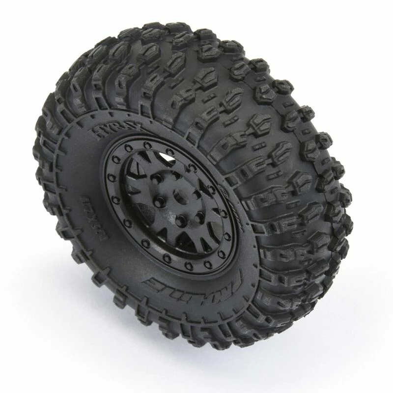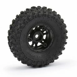 The Hyrax 1.0″ tire comes conveniently pre-mounted to our Mini Impulse Black Internal Bead-Loc 1.0″ Plastic 7mm Hex wheels! Yes, these are true 3-piece Bead-Loc wheels! Just like Pro-Line’s 1:10 size Impulse wheels, these all-new Mini Impulse wheels are designed to not only look scale but are super easy to use by only requiring 3 screws per wheel for mounting tires. The unique 3-piece plastic wheel design bolts together in the back and locks on to Pro-Line’s Hyrax 1.0″ Crawling Tires and also works with many existing 1.0″ tires for the SCX24™. If you own a SCX24™, then Pro-Line’s new pre-mounted set of Hyrax 1.0″ Tires are a must have! Get your own set today!