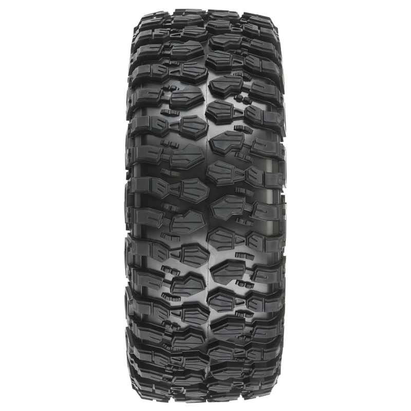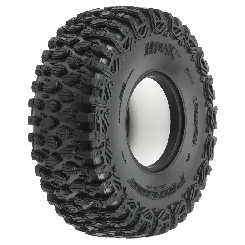The future of Super Rock Rey™ performance has arrived with Pro-Line’s all-new Hyrax XL Tire! Designed from the ground up for incredible grip and stability on the toughest terrain, the Hyrax XL 2.9″ tire is ready to tackle anything your Losi® Super Rock Rey™ can dish out. The Hyrax features an aggressive open tread pattern with each tread block containing multiple sipes for improved traction and comes in at a massive 7.28″ tall and 2.75″ wide. The highly detailed connected tread on the sidewall of the Hyrax extends out for added scale realism and sidewall rigidity to help prevent traction rolls. The Hyrax is made from a special large-scale Desert Racing compound, so you know it provides the performance and durability that you can depend on. This tire will fit directly onto the stock 2.9″ Super Rock Rey™ wheel or any other 2.9″ size wheel. Don’t get left behind, take your adventure to the next level with Pro-Line’s new Hyrax tires!