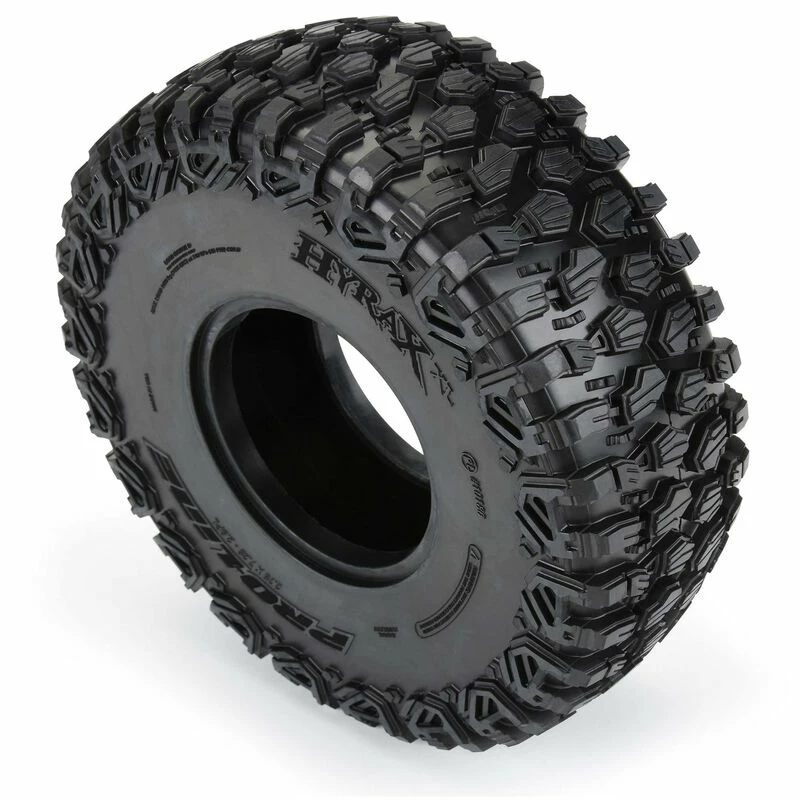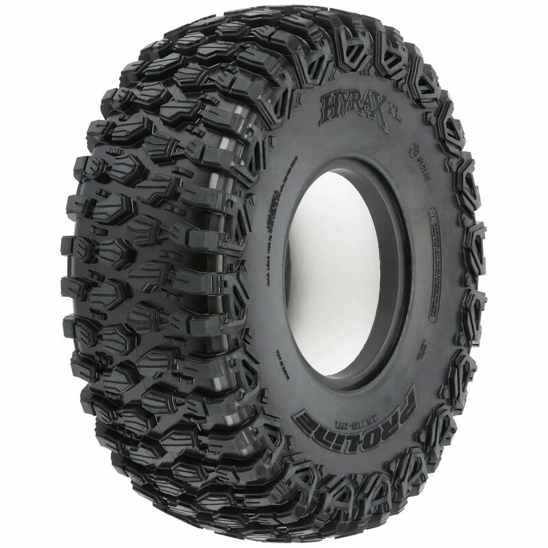 Take your SCX6™ to the ultimate level of rock-climbing performance with Pro-Line’s Hyrax XL Tire in G8 compound! Designed from the ground up for incredible grip and stability on the toughest terrain, the Hyrax XL 2.9″ tire is ready to tackle anything your Axial® SCX6™ can dish out. The Hyrax features an aggressive open tread pattern with each tread block containing multiple sipes for improved traction and comes in at a massive 7.28″ tall and 2.75″ wide.