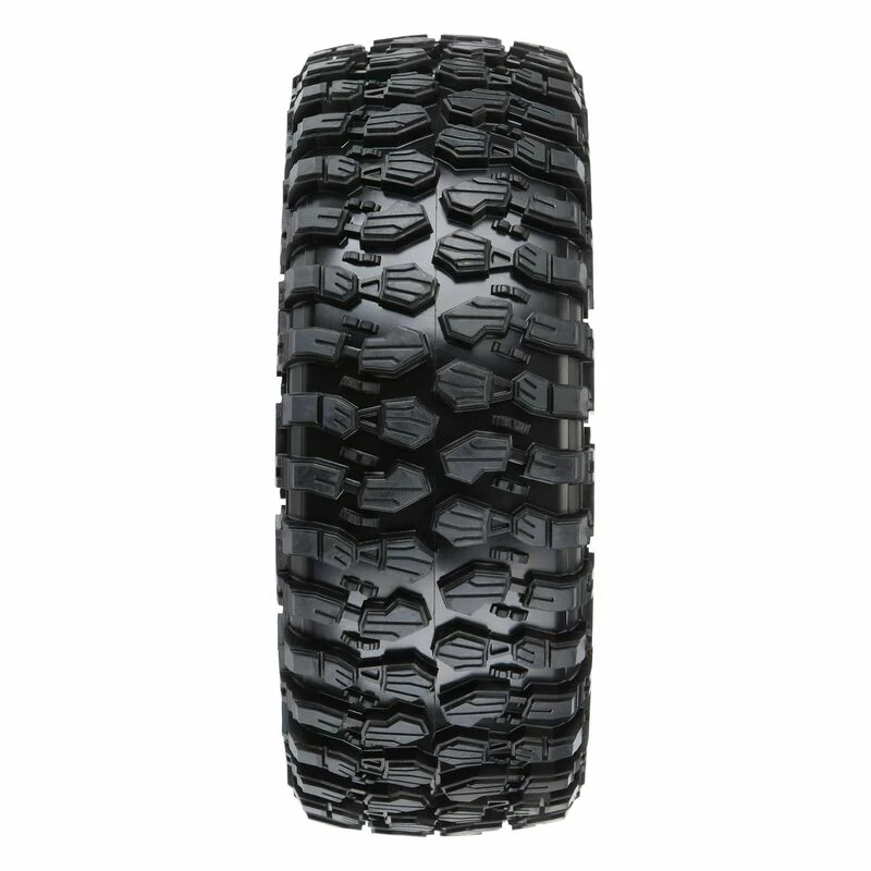 The highly detailed connected tread on the sidewall of the Hyrax extends out for added scale realism and sidewall rigidity to help prevent traction rolls. The Hyrax is made from the same G8 compound as the 1.9″ crawler tires, so you know it provides the performance and durability that you can depend on. This tire will fit directly onto the stock 2.9″ SCX6™ bead-loc wheel. Don’t get left behind, take your adventure to the next level with Pro-Line’s Hyrax tires!