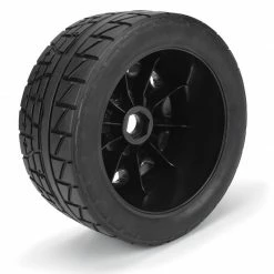 The Raid 5.7″ Black Wheel features a 24mm hex with the standard 1/5 scale through-hole to fit most 1/5 scale vehicles and includes machined aluminum wheel washers to fit onto the popular X-MAXX® platform. Inspired by popular full-size off-road wheels, the Raid 5.7″ wheel is extremely tough and has the bold style to match. This tire and wheel package is proudly manufactured at Pro-Line Headquarters in the USA! If you are ready to take your X-MAXX® and KRATON™ 8S to the next level of Performance and Durability, then you need Pro-Line’s Menace HP BELTED Tires mounted to Raid 5.7″ Wheels!