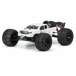Unlike clear polycarbonate, the Bash Armor material is White and is not paintable, so Pro-Line includes detailed decal sheets to complete the look. The Brute is Pro-Line’s take on a modern truck and features a bold grill with eye-pleasing body lines sure to turn heads at your local bash spot. This body has been specifically designed to fit the unique shape of the Kraton™ 6S including the inner cage! If you are ready to battle your buddies, then get the strongest body possible for your truck – the Pre-Cut Brute body with Bash Armor material technology!