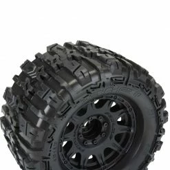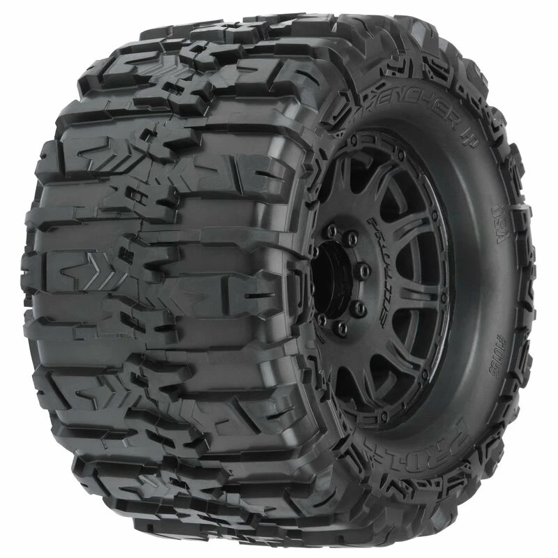 The Belted Trencher HP 3.8″ tires come Pre-Mounted on the next generation 3.8″ wheel design from Pro-Line, the Raid 3.8″ Removable Hex Wheel! Imagine being able to replace a damaged wheel hex without needing to replace your glued tires! These Raid 3.8″ wheels make this possible by using a unique 8×32 interlocking hex design that is secured to the wheel by 8 M3 screws that are spaced 32mm across. The hexes are included and are also available separately (PRO634500). The built-in adjustability and ease of use make this a must-have wheel for bashers everywhere! Be the first to own the latest and greatest technology from Pro-Line, get the Trencher HP 3.8″ Belted tires now!