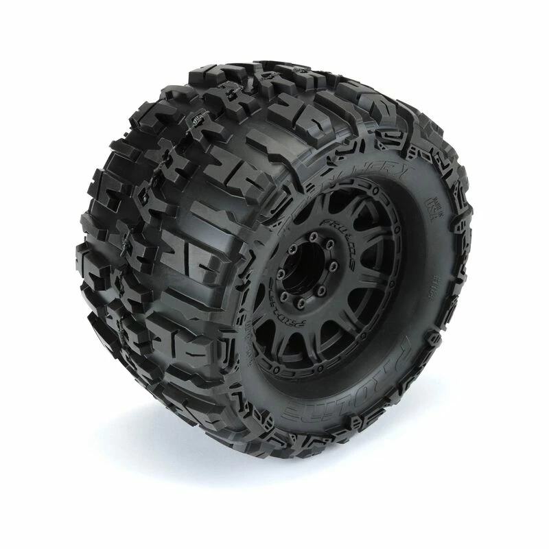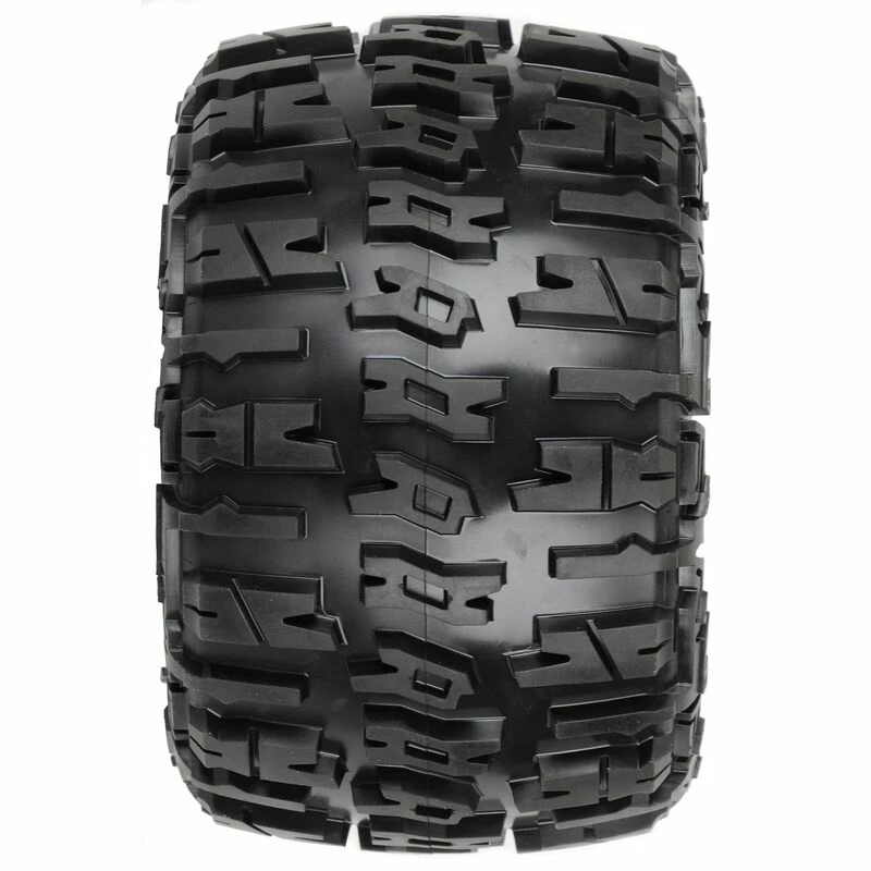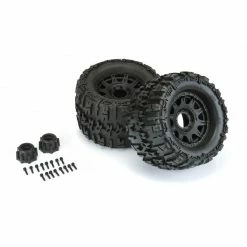This is a pair of pre-mounted Trencher X 3.8″ All Terrain Truck Tires. Leave a mark with your Monster Truck wherever you are with Pro-Line’s Trencher X tires. The Trencher X tires are designed to give your MT optimal traction on just about any surface. Super cool horizontal H shaped treads give your MT ridiculous amounts of forward bite. With tread height at 1/4″ tall, you’ll find that durability and longevity are second to none.