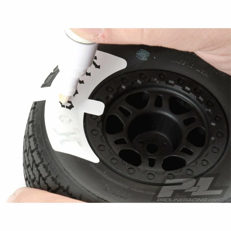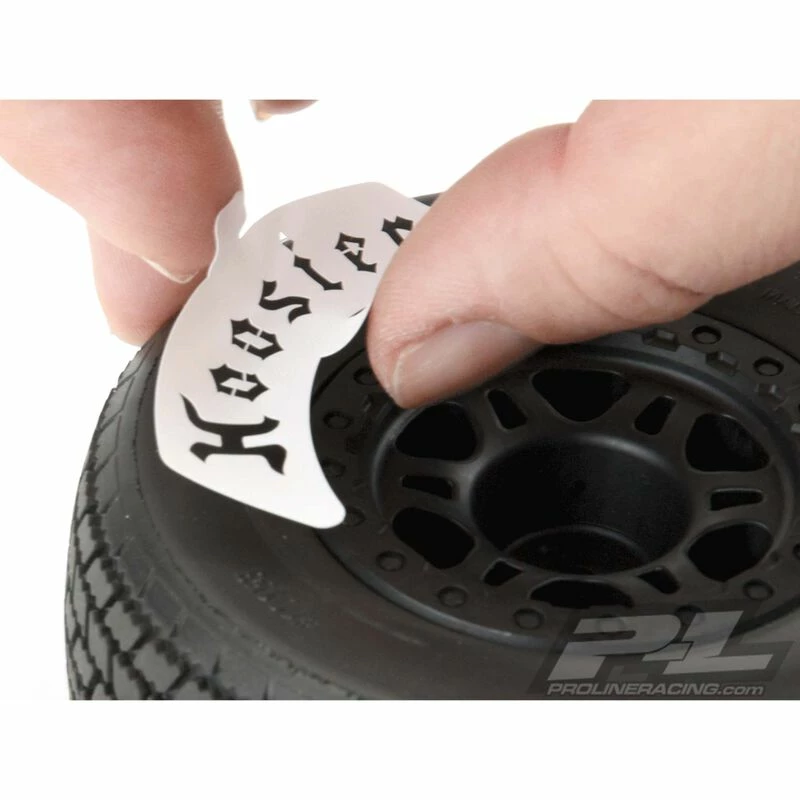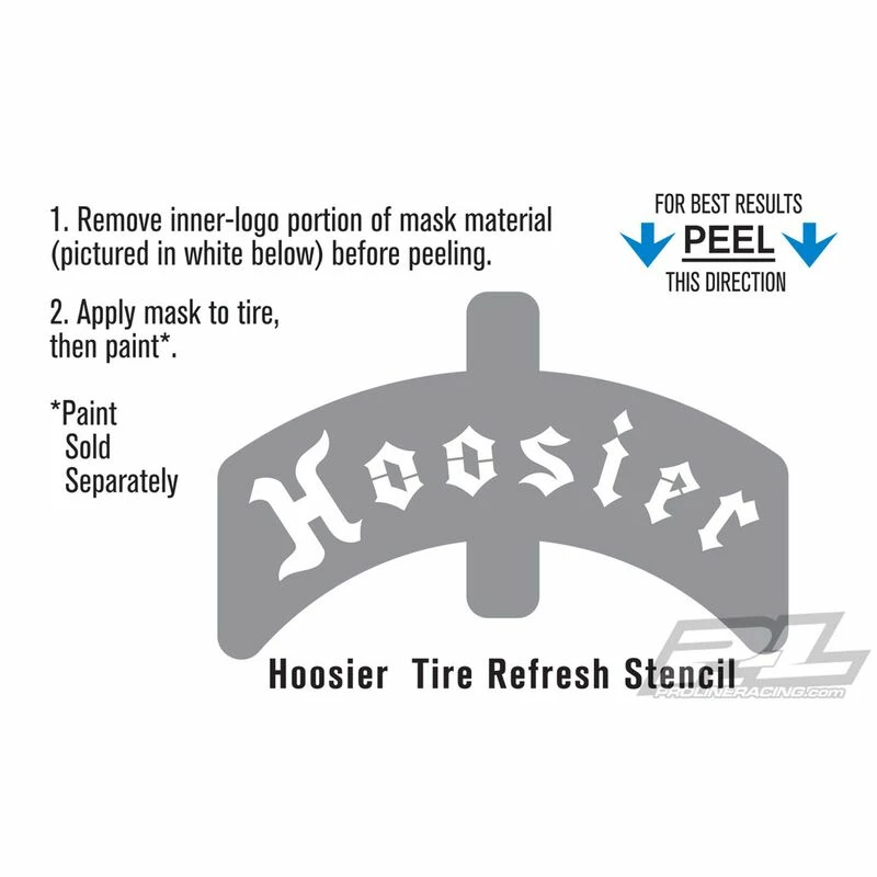 This is a Hoosier Tire Refresh Stencil pack. Do you want to touch up or re-paint your awesome Hoosier tires with fresh white logos? Then this stencil pack is for you! These officially licensed stencils feature the same size Hoosier logos that are printed on Pro-Line’s G60 and Drag Slick tires. 8 Stencils are included in each pack and easy pull tabs have been designed into the stencils for ease of use. Once laid onto the tire, you can re-paint and refresh the white logos onto the tire using any paint pen (sold separately) to make them look as good as new. If scale details are important to you then get your Hoosier Tire Refresh Stencils now!